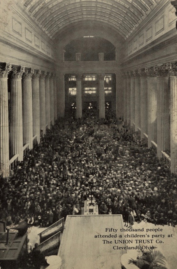 The Union Trust Company opened the bank in its new building on May 19, 1924. There followied several days of gala events at the bank to which the public was invited, including a "children's party" on Saturday, May 24, which was attended by an estimated 50,000 people. | Source: Cleveland Public Library, Photograph CollectionDownload Original File