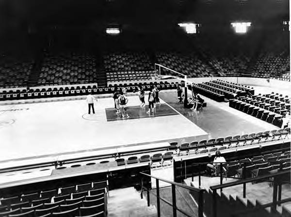 The Cleveland Cavaliers practicing at an empty Richfield Coliseum during the 1976 season. | Creator: Paul Tepley | Date: May 17, 1976 | Source: Cleveland Memory Project, Cleveland State University Library Special CollectionsDownload Original File