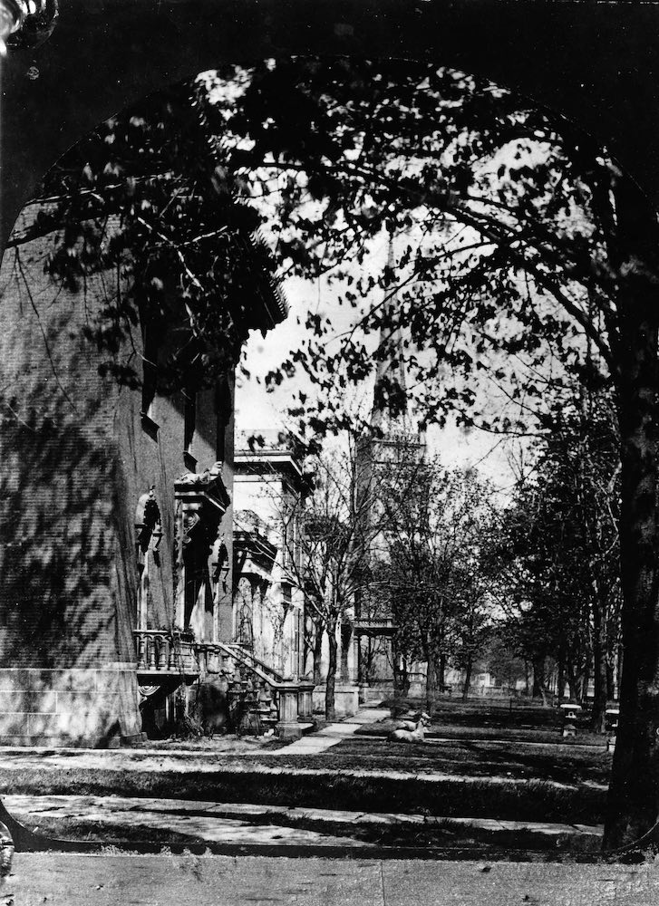 Henry Chrisholm’s mansion (left) once stood where the New England Building now stands. Henry Chrisholm's mansion, like many other mansions on Millionaires' Row, was demolished for a business building to be built in its place. | Date: 1865 | Source: Cleveland Public Library Photograph Collection
