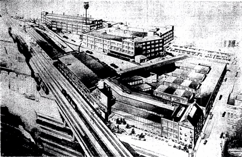 Van Dorn Iron Works Aerial View ID: 9973 | This file appears in: Van Dorn Iron Works This artist rendering of the Van Dorn plant, reprinted in the Plain Dealer in 1972, shows its sprawling expanse along the Pennsylvania Railroad tracks in the mid 1940s. | Date: ca. 1945 | Source: Cleveland Plain Dealer Download Original File SourceCleveland Plain DealerDateca. 1945 "Van Dorn Iron Works Aerial View" appears in: Van Dorn Iron Works