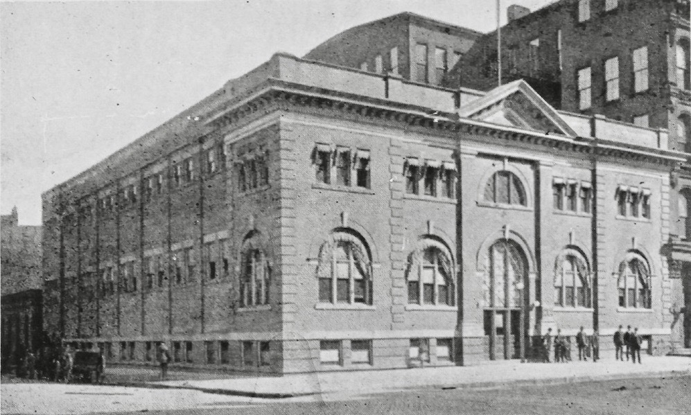 In the same month that the Library completed the purchase of its lots on Fulton, the West Side Improvement Association (WSIA), an organization of business owners and other prominent West Side individuals, held a meeting at the Catholic Club, on Bridge Avenue just west of historic St. Patrick Catholic Church. Some 400 people, including Librarian William H. Brett, reportedly attended. There, a proposal was made for the City to purchase additional land on Fulton north of the lots that the Library had purchased; use the Library's lots to extend Kentucky (West 38th) Street from Bridge to Fulton; and then create a park in the resulting triangular-shaped piece of land where the new West Side branch could then be sited. Ward 3 Councilman Thomas Croke, in whose ward the library and park would be located, agreed to introduce a City Council resolution to direct the City administration to explore the feasibility and cost of such a plan.