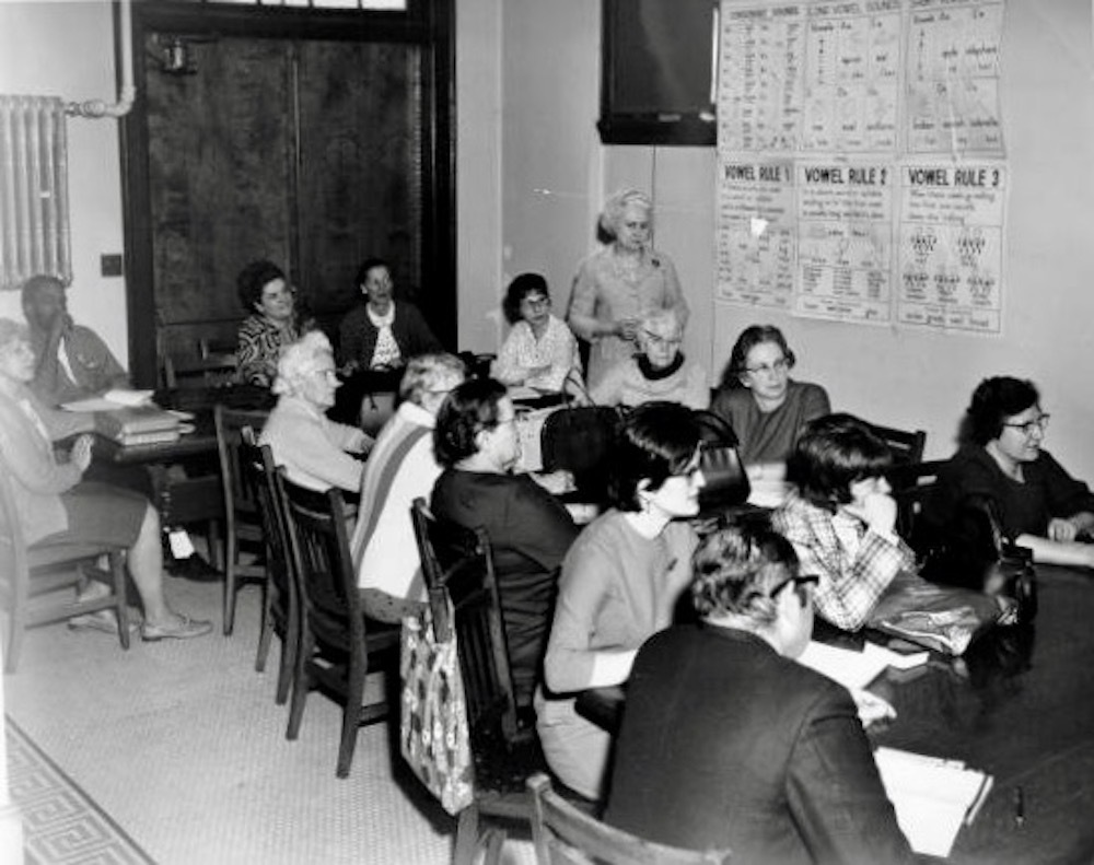 In the course of its long history, one of the library's most endearing traditions has been its service to the segment of the neighborhood population with the greatest educational needs, viz., immigrants and other non-English speakers. When the branch library opened in 1910, that group was largely composed of Hungarian immigrants who had been moving into the neighborhood since the late 19th century. Carnegie West staff welcomed them by providing books in their native language, sponsoring their cultural events at the library or in Library Park, and by offering classes in English. When World War I intervened and caused many Americans to question the loyalty of Hungarians and other recent immigrants from eastern and southern Europe, the Cleveland Public librarians, including those at Carnegie West, responded with their own version of "Americanization," which showed a respect for the culture, language and traditions of the newcomers and offered their services and materials to help them navigate their new life in this country.
