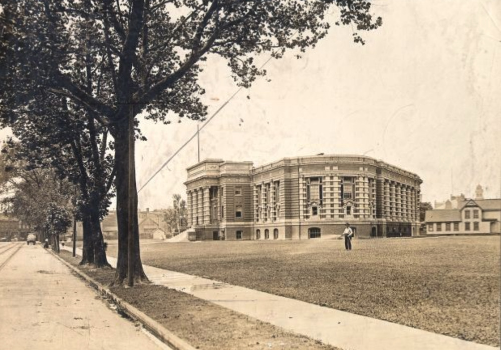The Library's proposal to site the new West Side branch library across the street from where the new West Side Market was to be built drew an immediate and negative public response. At least four different groups of residents and/or business owners protested the proposal and recommended various other locations for the new branch library. One of these groups felt so strongly that, on June 8, 1903, two hundred of its members traveled downtown to Cleveland Public Library's main building, which then stood on the southeast corner of Wood (East 3rd) Street and Rockwell Street (Avenue). There they protested outside—while the Board held a meeting inside—each member wearing a silk badge that read: "Branch Library, Corner Clark Avenue and Lorain Street."