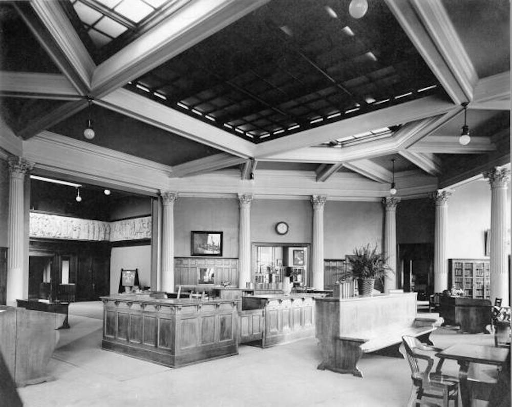In 1903, "Steel King" Andrew Carnegie pledged $250,000—today's equivalent of eight million dollars—for seven new branch library buildings in the City of Cleveland. One of the existing branches that was intended to benefit from the pledge was the West Side branch library. Opened in 1892, it was Cleveland's first branch library. Since 1898, it had occupied a building on Franklin Boulevard near Pearl (West 25th) Street. The building—still standing and known today as the "Cinecraft Building"—had been designed and built for the branch, but was owned by People's Savings Bank which leased it to Cleveland Public Library.