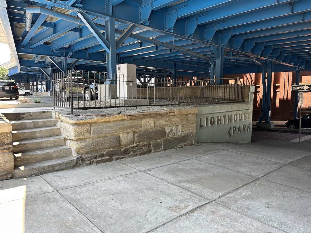 If the Cleveland Harbor Lighthouse continued shining to this day, its beam would illuminate much of the Flats, keep most residents of the Archer Apartments and Pinnacle Condominiums unhappily awake, and seriously endanger drivers crossing the Cleveland Memorial Shoreway bridge. That’s all moot, of course, since the lighthouse ended its service in the 1890s. All that remains are sections of a sandstone wall and steps at the southwest corner of West 9th Street and Main Avenue. It’s a cute little spit of land, appropriately named Lighthouse Park.