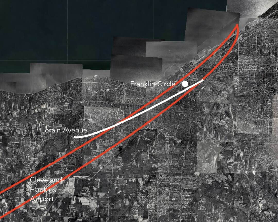 At 8:23 p.m. the rain began to fall, and at 8:50 the thunder started. Five minutes later the Cleveland Weather Bureau issued a tornado warning. The thunderstorm grew in strength with high winds and heavy rain, and at 9:45 the tornado was observed on the ground at the north edge of the Cleveland-Hopkins Airport. Not long after, a second funnel was spotted just north of the Solon Airport as well.
