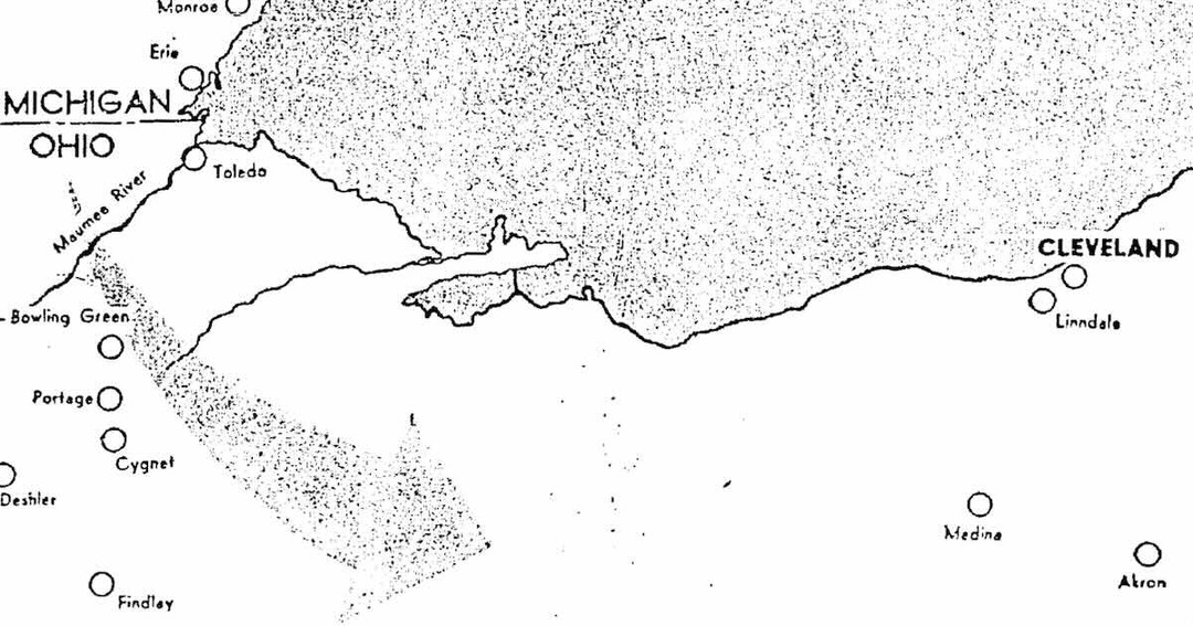 On June 8, 1953, the west side of Cleveland was struck by a large F4 tornado that ripped through the city, causing mass destruction. The stormfront that produced this tornado had originated in Michigan, where it struck Flint, killing 116 people and injuring 844 before working its way south into Ohio. The long-track tornado that eventually hit Cleveland first touched down around the village of Deshler (midway between Toledo and Lima). The storm made its way east-northeast, hitting Cygnet, where it reportedly killed eight people and injured a further forty-eight. By evening, Cleveland was in harm's way.