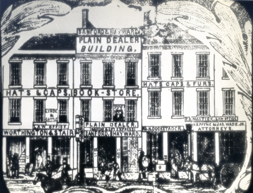 The Plain Dealer Buildings Just east of the Central Buildings stood another commercial block composed of a number of individual buildings. Also built by lessees of Nathan Perry, it was erected in 1847. This block, known for a time as the Plain Dealer Buildings, was, like the remaining Central Buildings, razed in 1888 to make room for the Perry-Payne Building. Source: Cleveland State University, Cleveland Memory Project Date: ca. 1850