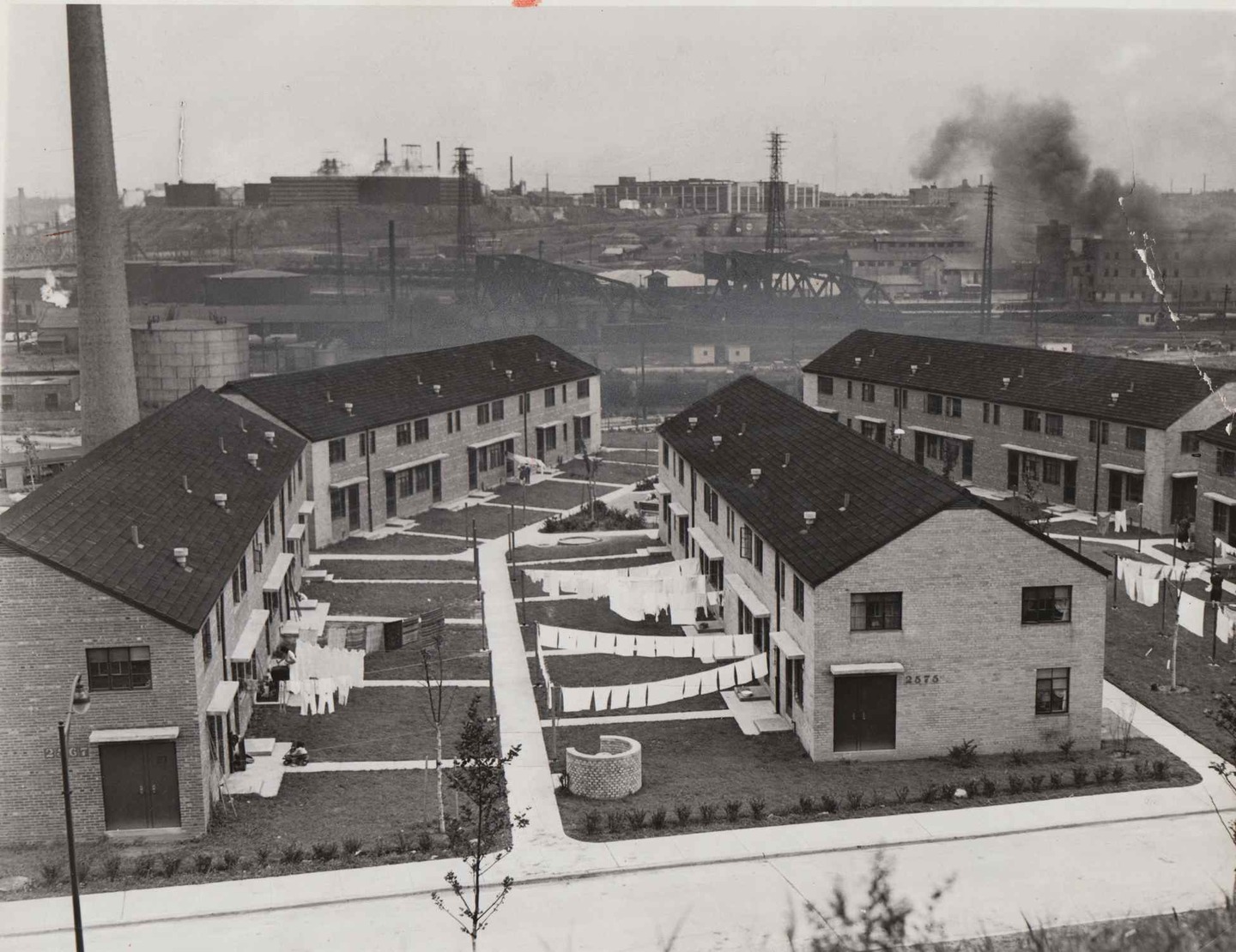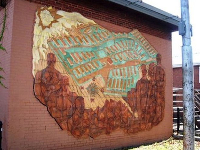 In Cleveland, several public housing projects (Cedar-Central, Outhwaite, Lakeview Terrace) preceded the development of Valleyview Homes Estates. However, Valleyview was among the first (along with Woodhill and Carver Park) to actually be built and overseen by the Cleveland Metropolitan Housing Authority (CMHA). Completed in 1940 on a bluff overlooking the Cuyahoga Valley in southeastern Tremont (then known as South Side), Valleyview was comprised of two-story brick buildings containing a total of 582 apartments . The project cost nearly $3.5 million and featured playgrounds, a community center, and craft shops. Local artists commissioned by the Works Progress Administration (WPA) created numerous murals and other pieces of art, which were placed in various spots throughout Valleyview.