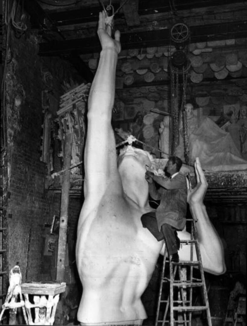 The Fountain of Eternal Life’s sculptor, Marshall Fredericks, was a graduate of the Cleveland Institute of Art and had served in the United States Army Corps of Engineers and the United States Air Force during the Second World War. As the conflict came to an end in 1945, several organizations and media outlets in Cleveland began formulating a plan to develop a memorial to honor local residents who were lost. By the end of 1945, the Cleveland Press had raised $104,000 through a public subscription drive, enough for the initial planning and sourcing of materials for a monument to take place and for Fredericks to be officially selected as the designer and sculptor of the memorial. By 1946, it was decided that the memorial, dubbed the War Memorial Fountain in the media, would be built on Cleveland’s Mall.