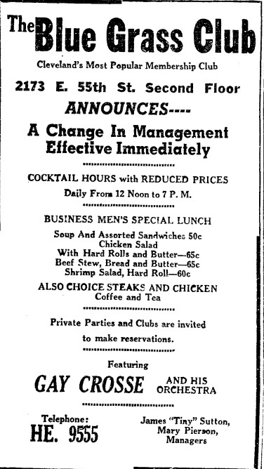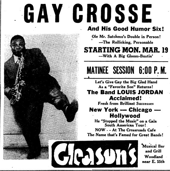 “Cleveland won’t appreciate Gay Crosse until he leaves here, plays the East, makes a success, then comes back.” — Louis Jordan, 1946