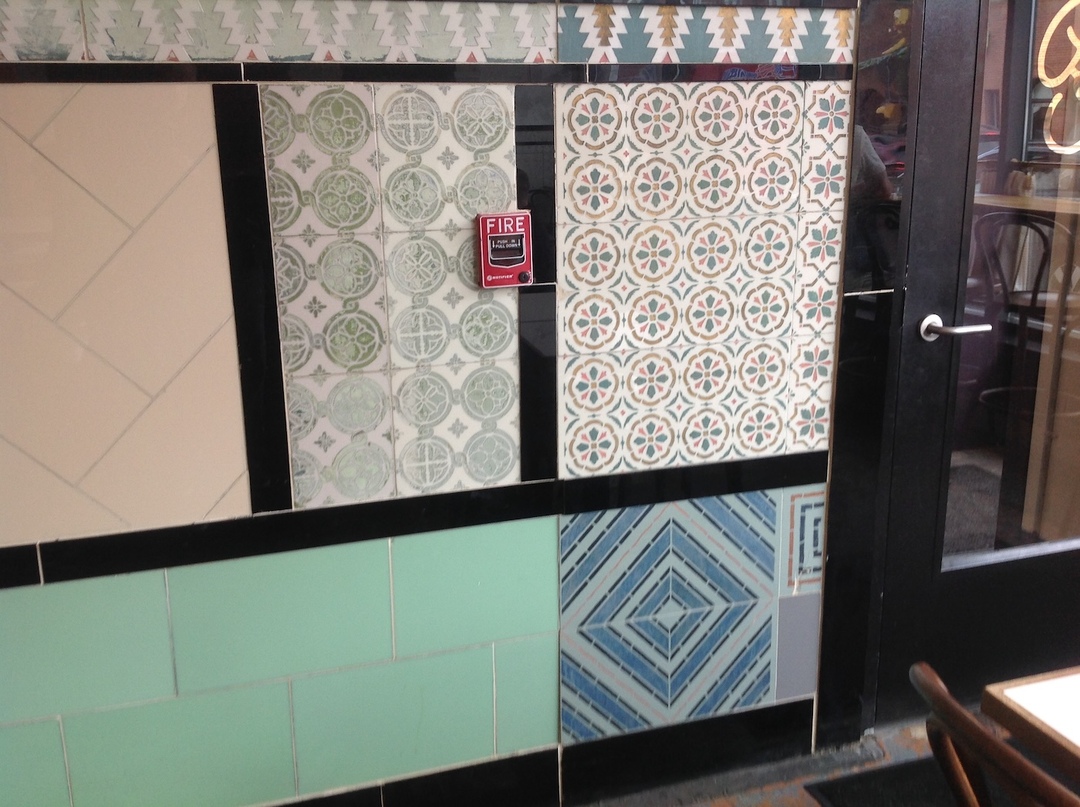 Passersby often turn their heads as they pass the Vitrolite, a historic building located at 2915 Detroit Avenue. The striking 18,000-square-foot building stretches a full city block southward to Church Street. But rather than its exterior, the building's interior explains its name. A step inside the original showroom, currently occupied by Patron Saint Cafe, reveals a wall of Vitrolite glass tiles manufactured by the company through much of the twentieth century.