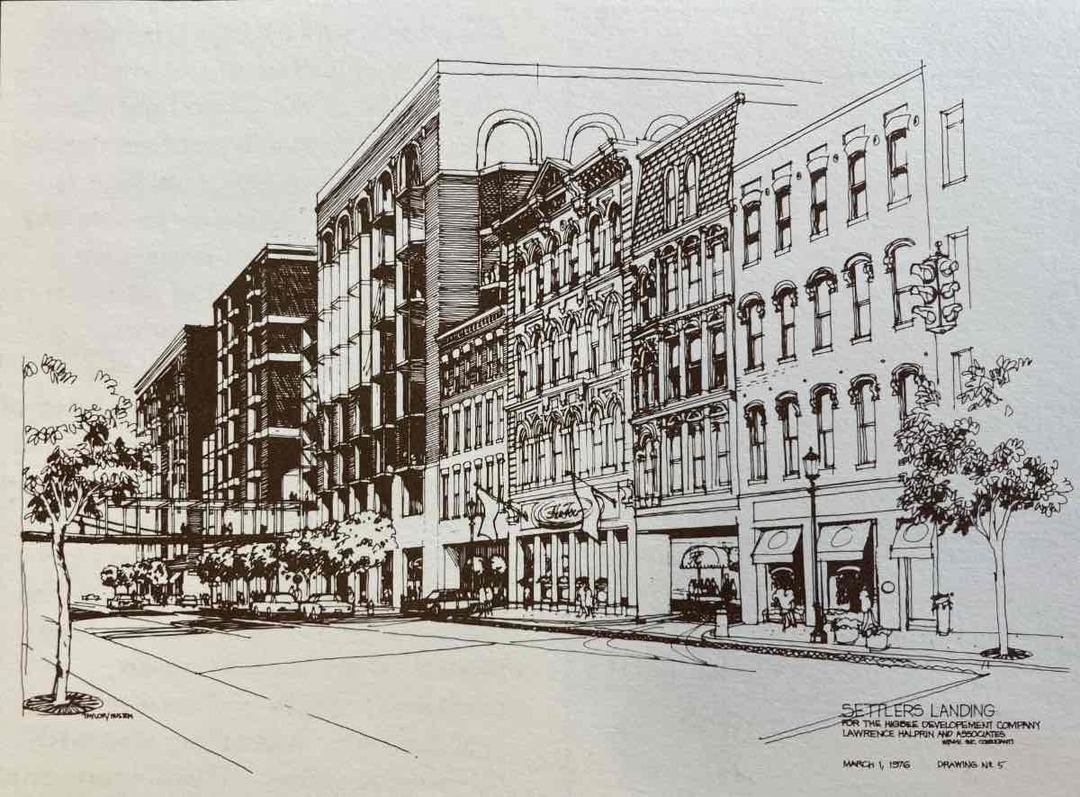 After the departure of the furniture business, the Hart Building saw a succession of business uses. Among the longest-running was the Cleveland office of Chicago-based Fairbanks, Morse & Co., a manufacturer of scales, engines, pumps, and windmills, which occupied the building in the 1880s to 1910s. After business declined on and around West 9th Street following World War II, the Hart Building became a part of efforts in the 1970s and '80s to revamp Cleveland’s so-called Warehouse District, including the ill-fated Lawrence A. Halprin plan for Settlers Landing. Jacobs Investments bought the Hart Building in 1984 and renovated its upper floors as apartments. As the district revitalized, the ground-floor space at 1370 West 9th became an antique store in 1988 and then housed two art galleries in succession in the 1990s to 2010s. Since 1995 the Hart Building’s five residential units have been condominiums. Its 1868 addition remains as a rare remnant of a time when the Warehouse District had many tall, narrow commercial blocks.