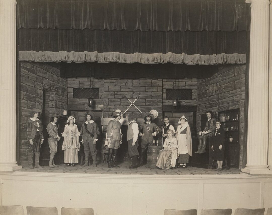 "Holiday," Nov. 1930 A cast photo of the show "Holiday" on stage at Shaker Heights High School Auditorium performed by the Shaker Players in 1930. Source: Shaker Historical Society Date: 1930