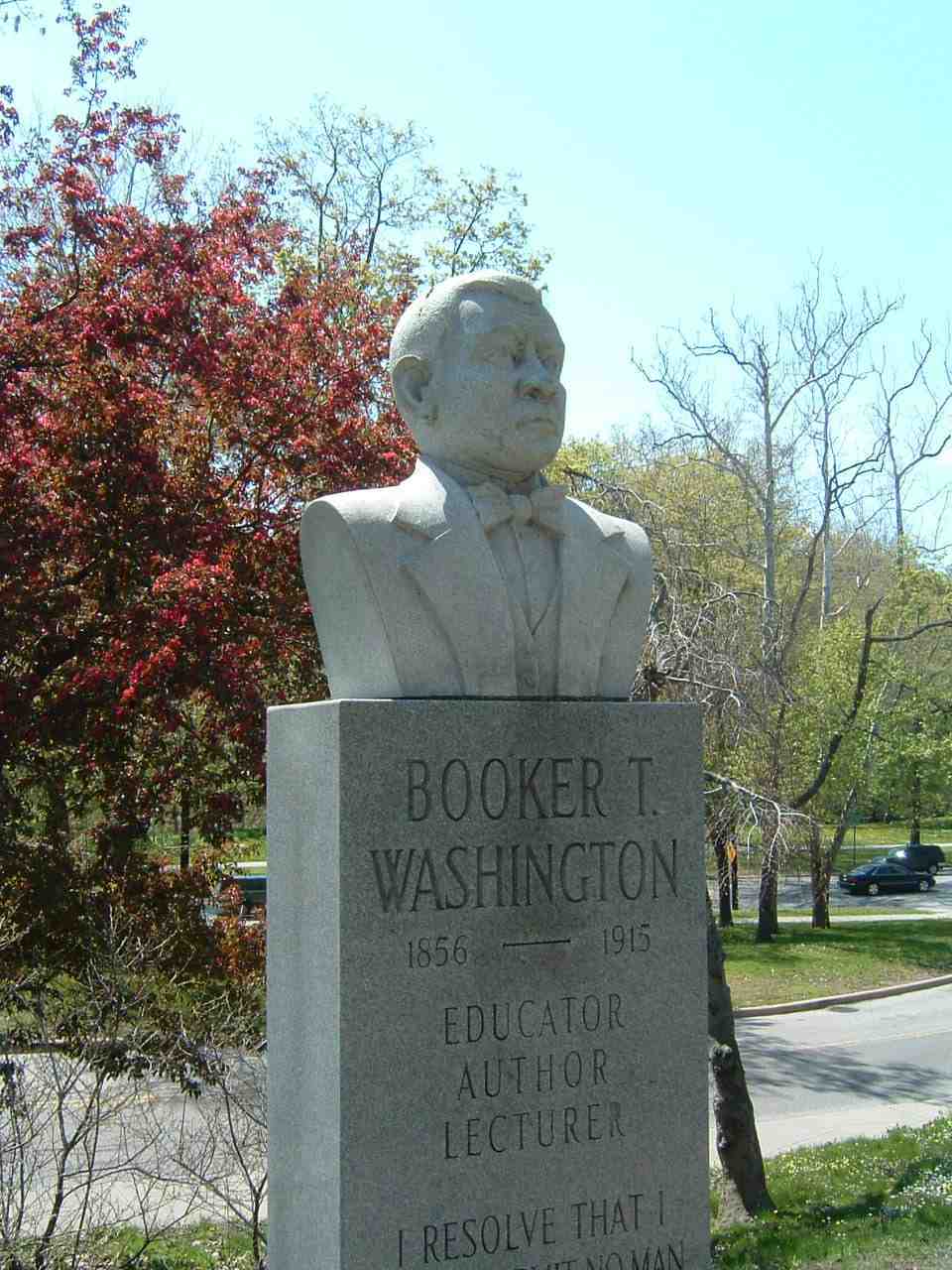 Booker T. Washington, American Garden A bust of Booker T. Washington was added to the American Colonial Cultural Garden in 1970, before the African-American Garden existed. Over the years the bust has often been a target for vandals, some motivated by the racial tensions that once existed in the neighborhoods surrounding the gardens. Creator: Center for Public History + Digital Humanities