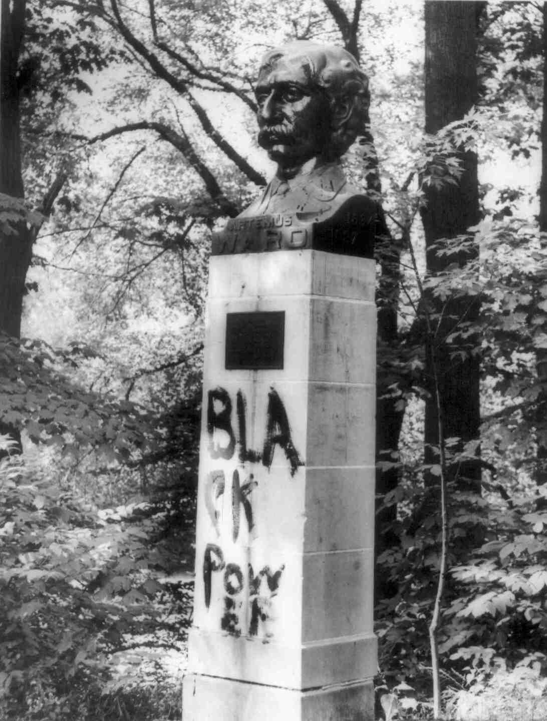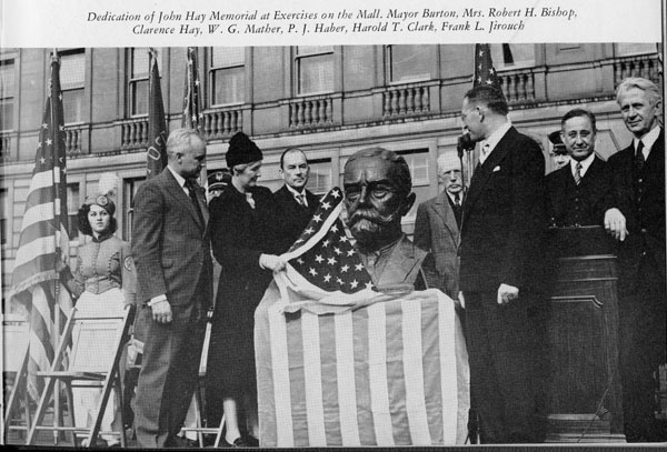 On May 24, 1935, the Parent Teachers Association Council presided over the dedication of what was then known as the American Cultural Garden. They were aided by numerous Cuyahoga County schoolchildren and their mothers who sang folk songs. Those same schoolchildren also collected pennies toward the purchase of a bust of Mark Twain. The bust was finally unveiled on December 6th, 1935, the 100th anniversary of his birth. On July 23, 1939, the B'nai B'rith presented the garden with a bust of John Hay; secretary to Abraham Lincoln, Secretary of State from 1898-1905 and husband of Clara Stone of Cleveland. On August 2, 1948, The Plain Dealer presented a bust of Artemus Ward (pen name of Charles Farrar Browne); noted lecturer, humorist and member of the Cleveland Plain Dealer staff in 1859, to the city. In later years the Tuskeegee Airmen Alumni association of Cleveland donated a bust of educator, author, orator and political leader Booker T. Washington. The Pearl Harbor and Space Exploration Monuments were also added to the Garden.