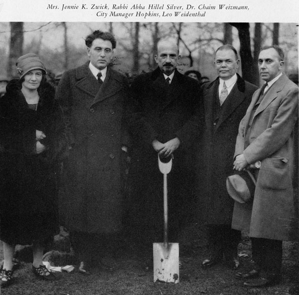 Dedication, Oct. 1927 This photograph shows several dignitaries at the dedication of the Philosophers' Circle of the Hebrew Garden on October 30, 1927. Image courtesy of Cleveland State Library Special Collections