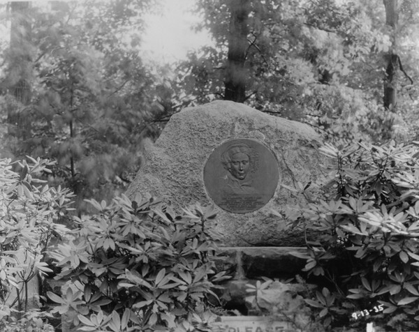Rebecca Gratz, 1935 This bronze plaque inserted into a boulder on the north side of the Hebrew Garden honors Rebecca Grtaz (1781-1869). The Gan Ivri (Hebrew Garden) League donated the plaque in 1932. In 1801, Gratz founded a nonsectarian support society in Philadelphia for women and families suffering from the after effects of the Revolutionary War. She is also credited with founding the first Jewish Sunday school and a Jewish orphanage in Philadelphia. Image courtesy of Cleveland State Library Special Collections