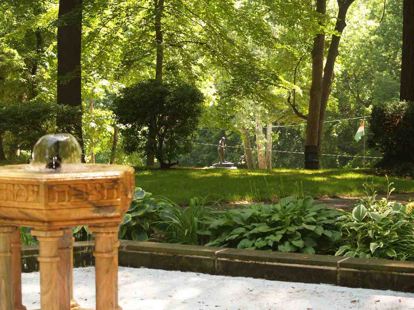 Fountain of Wisdom, 2009 The pink Georgian marble fountain seen here is one of the main features of the Hebrew Cultural Garden. Recently restored, it sits atop seven pillars representing the seven branches of wisdom. The Hebrew inscription running across its sides is from Proverbs chapter 9, verse 1 and reads: "Wisdom hath built herself a house; she hath hewn her out of seven pillars." Image courtesy of The Center for Public History + Digital Humanities