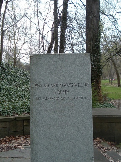 Pastor of Holy Ghost Greek Catholic Church, Reverent Jseph Hanulya, was also the head of the Rusin Cultural Garden Association. In May, 1952, Hanulya unveiled a bust of Alexander Duchnovich. A Greek Catholic priest, Alexander Duchnovich (1803-1865) wrote prose and poetry in the Rusyn language, and also wrote the Rusyn National Anthem. The bust has since been stolen and no longer stands in the garden.