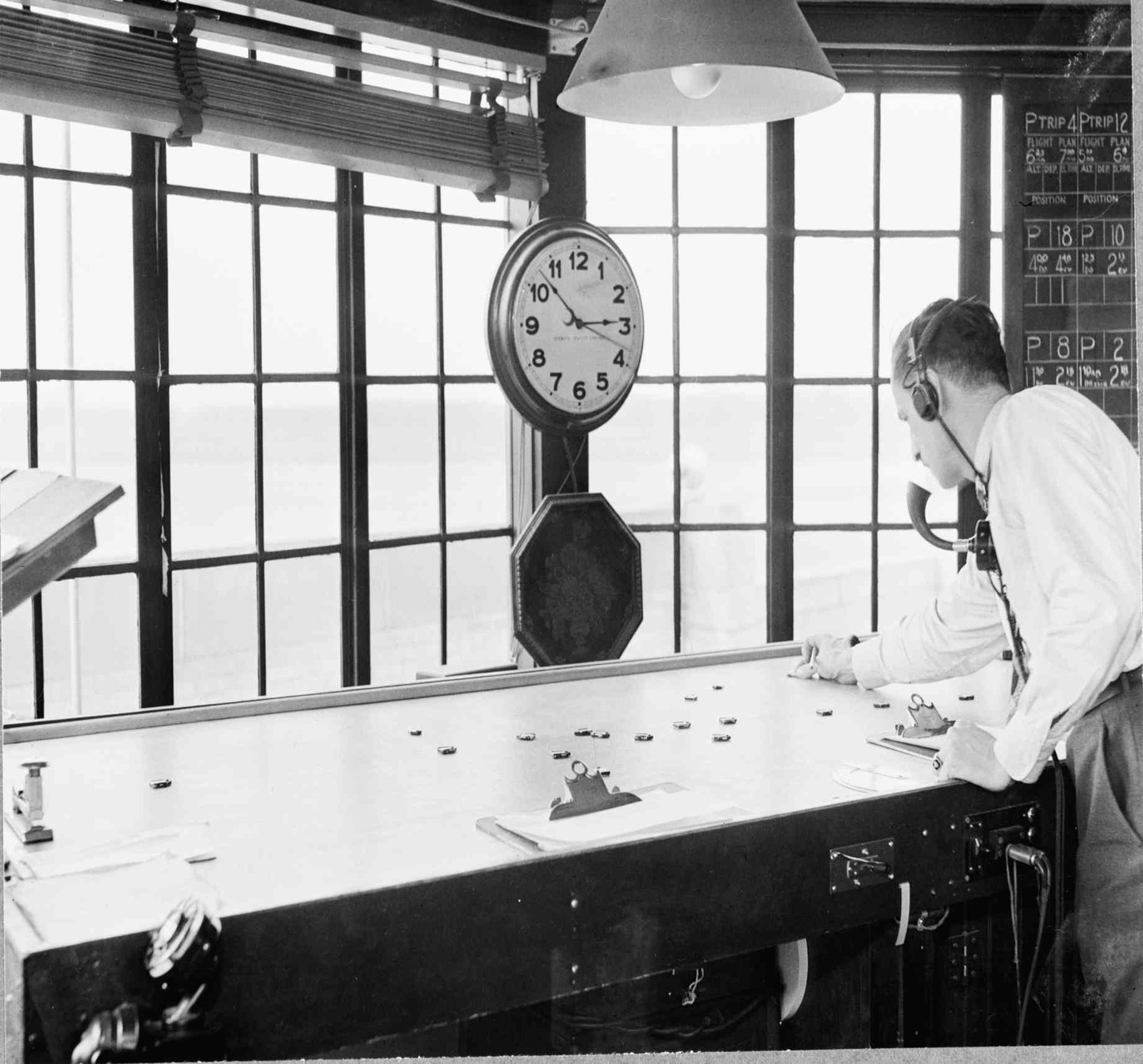 The number of planes using Cleveland Municipal Airport jumped from a few thousand in its inaugural year to nearly 20,000 by 1929. A new terminal building constructed that year contained the world's first air traffic control tower — a tall, glass-enclosed structure with a 360-degree view of the air field. Soon after its construction, two-way radio was installed in the tower, the first time this had been used in the aviation field. This proved to be an important addition, as in its early years the airport used the "allway" landing mat process, which allowed multiple planes to land simultaneously on different parts of the air field — a process designed to prevent pilots from having to wait mid-air for space to land.