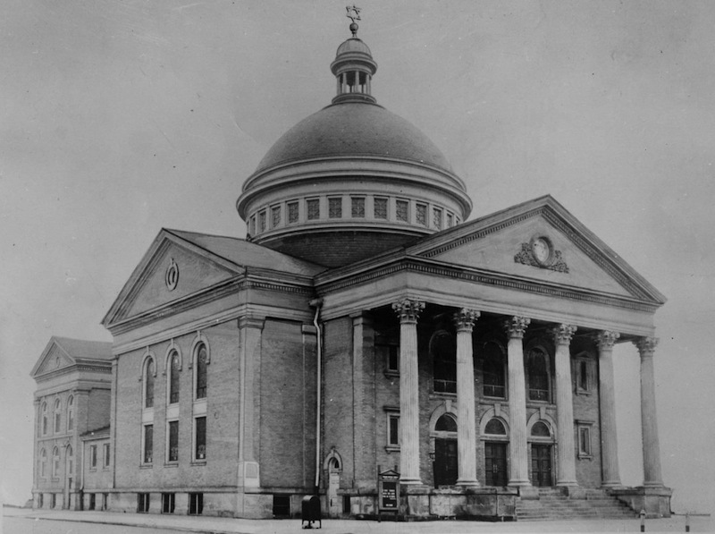 B'nai Jeshurun Synagogue The building that currently houses the Shiloh Baptist Church was completed in 1906 for the B'nai Jeshurun Jewish congregation. Architect Harry A. Cone's neoclassical design for the symmetrical, cruciform structure centered around the building's most distinguishing feature- its central dome. Source: Cleveland State University. Michael Schwartz Library. Special Collections.