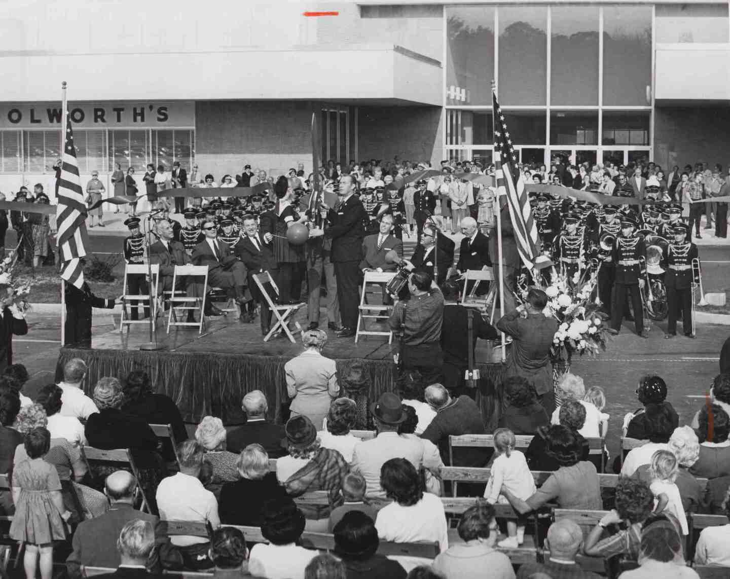 Severance Center opened for business in October 1963. The mall's original anchors were Cleveland-based department stores Halle's and Higbee's. Other tenants at the new mall included Fisher Foods, Woolworth's, Richman Brothers, Peck and Peck, and a branch of Society National Bank. At first, the mall was extremely successful. As newer malls opened across Greater Cleveland, however, Severance faced stiff competition. Halle's closed in 1982, prompting a renewed push to upgrade the mall into a full-fledged "town center." New anchor stores were brought in, a new food court opened, and, most significantly, in 1986 the Cleveland Heights City Hall relocated to the northwest corner of the Severance property. By the 1990s, however, the mall was simply unable to compete in its existing form, and much of the original mall was torn down. The current outdoor shopping center, anchored by "big box" stores, reflects the response to continually changing patterns in retailing.