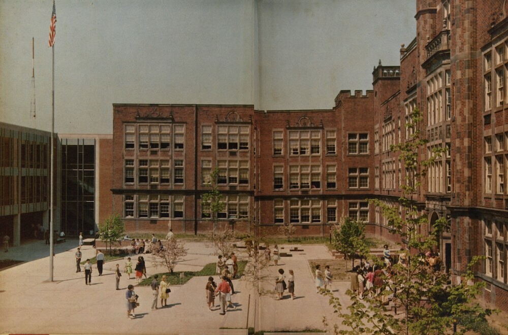 Nonetheless, expansions to Heights High over the years were necessary to accommodate a student body that at one time approached 3,000. Perhaps the most noticeable of these changes occurred in the 1960s when a new "Science Wing" added along Cedar Road closed off the front of the school, creating an interior courtyard. As enrollment is now much lower (1,700), this long-controversial segment of the school was removed as part of a massive renovation completed in 2017.
