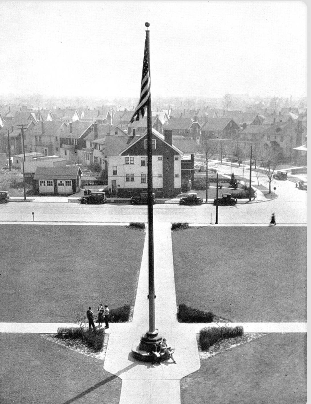 Cleveland Heights High School, referred to simply as "Heights," originated in 1901 on the site of the present-day Boulevard Elementary School, near the intersection of Lee Road and Euclid Heights Boulevard. Cleveland Heights High School's first graduating class, in 1907, numbered just five students. The school soon became too small for the growing student body and a new Cleveland Heights High School, designed by Walker and Weeks and fronting Lee Road just north of Euclid heights Boulevard, opened in 1916. It too was soon deemed inadequate.