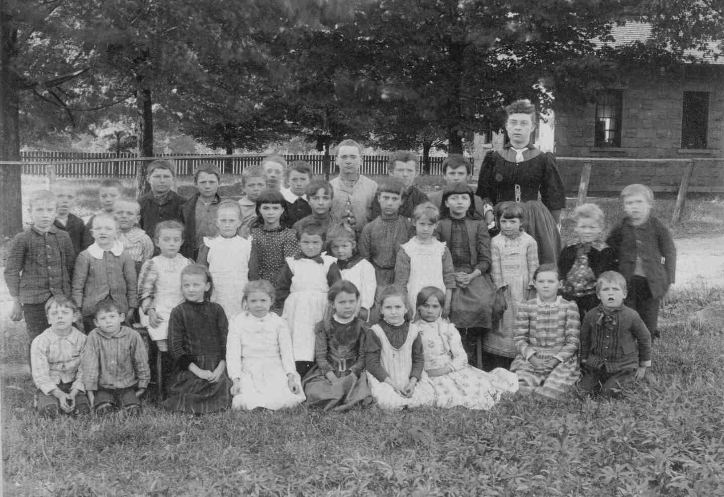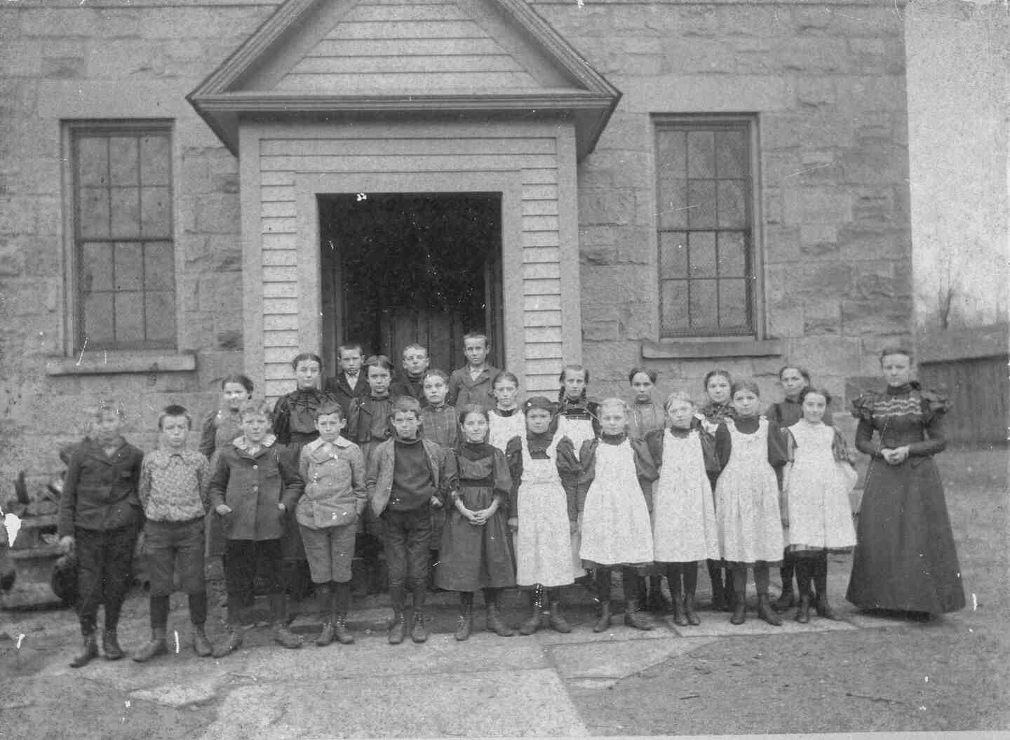 In 1859, a portion of the land in present-day Cleveland Heights fell within the boundaries of the rural township of East Cleveland. That year, East Cleveland's Board of Education purchased 0.84 acres from the Clark family for $72 for the purpose of building a school. East Cleveland District 9 School, a one-story brick building, opened soon after. Some have suggested that, in 1882, this structure was demolished and replaced with a new schoolhouse constructed of sandstone from a local quarry. Others surmise that the original brick schoolhouse was merely faced with sandstone, and that the structure standing today is indeed the original school, built around 1859.