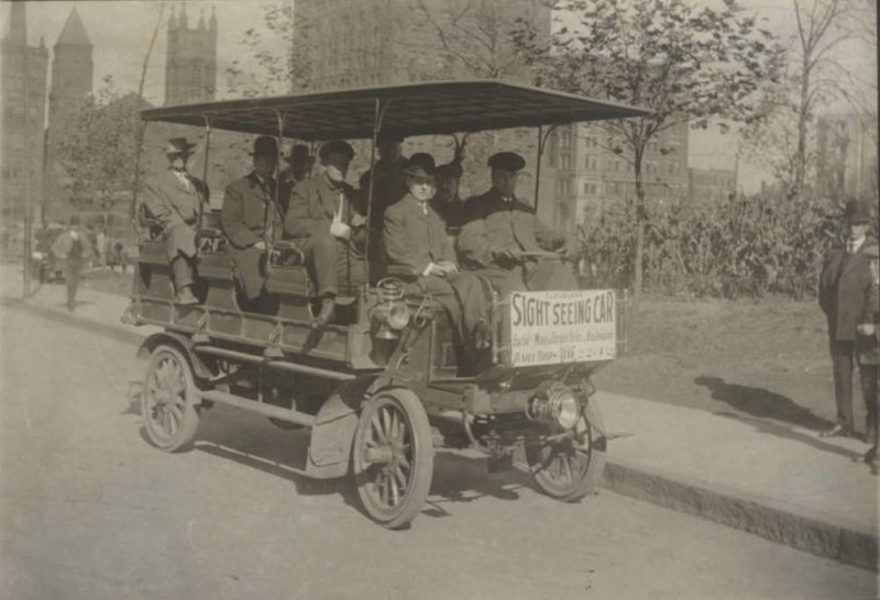 Sightseeing Car in Public Square, 1910 By the early 20th century Public Square, which was centrally located and close to the city's main hotels, served as the point of departure for tourist sightseeing cars such as this one. So-called "seeing-the-city cars," as historian Catherine Cocks has argued, were also very popular means of enabling tourists to selectively view cities as collections of attractions. Source: Cleveland Public Library Digital Gallery Date: 1910