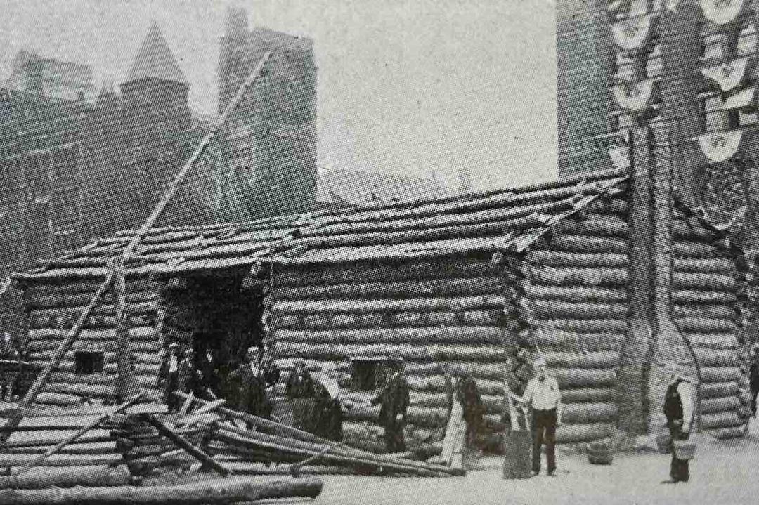 Centennial Log Cabin This replica log cabin was erected on the northeast quadrant for Cleveland's Centennial celebration in 1896. Old Stone Church and the Society for Savings Building appear behind it. Source: Samuel P. Orth. A History of Cleveland, Ohio. Chicago: S. J. Clarke Publishing, 1910. Date: 1896