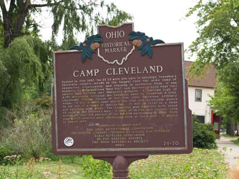 Camp Cleveland Camp Cleveland was the largest training camp in Northeast Ohio during the Civil War. The 7th OVI received their training at Camp Taylor, near the intersection of East 30th Street and Woodland Avenue. But, the 7th OVI did muster out at Camp Cleveland on July 8, 1864. This historical marker in Tremont, overlooking the Cuyahoga River valley at the intersection of West 10th Street, West 7th Street, and University Road, indicates the spot at which Camp Cleveland used to be located.