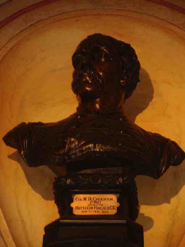 Creighton At Soldiers' and Sailors' Monument Colonel Creightonis honored in the interior of the Soldiers' and Sailors' Monument. His bronze bust sits there near the names Ohioans who served, fought, and died to protect the Union. Image courtesy of Diane Norris