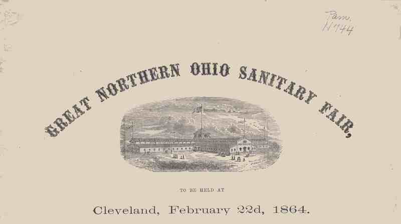 Sanitary Fair A special building was constructed in the shape of a Greek cross on Public Square in Downtown Cleveland to hold the Sanitary Fair. The fair proved very successful, raising over $100,000 for the Soldiers' Aid Society. Admission to the fair was $.25 and additional funds were raised for the society in various auctions. The fair's exhibits included floral, artistic, and war-souvenir displays. This pamphlet advertised the fair which was held from February 22 to March 10, 1864. Source: Western Reserve Historical Society Date: 1864