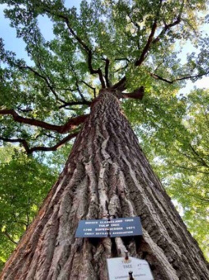 Cleveland further paid homage to its founder not only through the city’s name and bronze monument but through living monuments scattered throughout Greater Cleveland. In 1946, as part of the 150-year anniversary of Moses Cleaveland’s party arriving at the Cuyahoga River’s mouth, it was proposed that Arthur B. Williams and the Cleveland Museum of Natural History should locate and label trees that were alive in Cleveland when Moses Cleaveland first came to the city. There were 242 trees nominated from 23 different tree species. Each tree was checked to verify its age. The final list of official Moses Cleaveland Trees included 150 trees that the public could easily access. Each of the official Moses Cleaveland Trees was outfitted with commemorative metal plaques so that the public could easily identify the trees. Since 1946, more trees have been added to the official list of Moses Cleaveland Trees, while some of the first designated trees have died out. As of 2021, there are 273 Moses Cleaveland Trees, which stand as living history that connects present-day Cleveland to its founding.