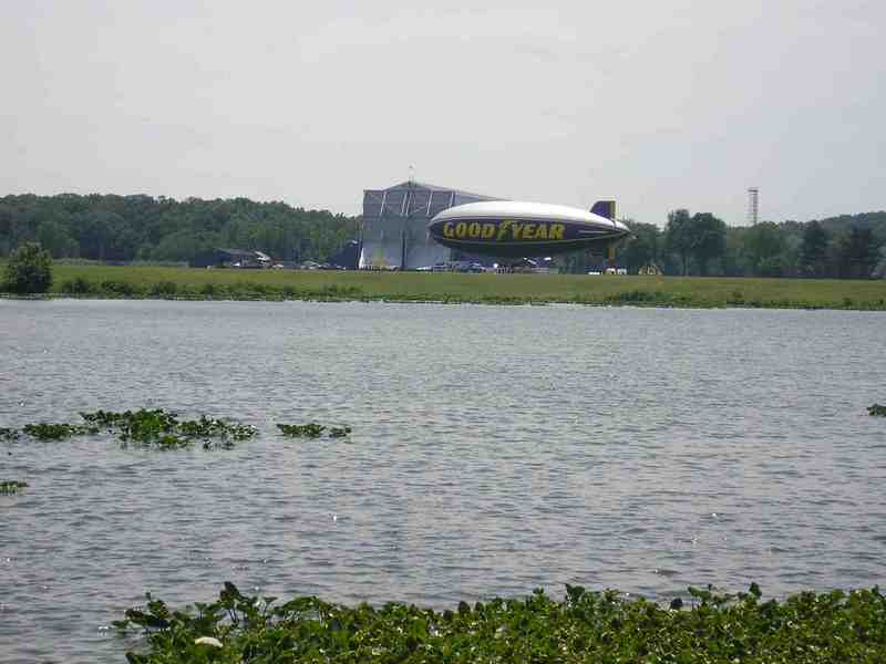 Goodyear still maintains a blimp hangar, home to one of the famous Goodyear blimps seen at sporting events, at Wingfoot Lake in nearby Suffield. Wingfoot Lake was the original site of Goodyear's Aeronautics Department. In 1917, the company began building blimps and training military pilots at the site. Shortly thereafter, the Navy took over the facility and operated it as the United States Airship Training Station from 1917 until 1921. Goodyear moved its aeronautics program to the Airdock in 1929 and, after using the Wingfoot Lake site for a variety of purposes, sold most of the land to the State of Ohio in 2009 to create Wingfoot Lake State Park.