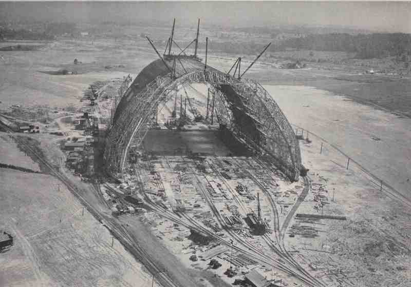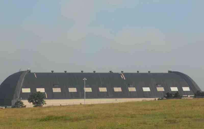 The Airdock is gigantic. Stretching 1,175 feet in length and 325 feet in width, the structure covers 364,000 square feet of ground. That means that almost seven football fields can fit inside it. The outer skin of the structure has been described as "half a silkworm's cocoon, cut in half the long way." The top of this "cocoon" reaches 211 feet high. Each end of the Airdock has a pair of huge doors that weigh 609-tons apiece. Each door rests on forty wheels and railroad tracks that allow them to open and close. The Airdock cost $2.2 million to build.
