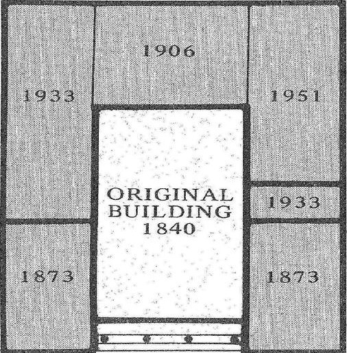 The east side of the Medina square has for over 170 years been claimed by the county courthouse. Today when one walks the Medina Square, the east side of the square notably casts the shadow of law but has the least amount of traffic -- hence the development of the other three sides of the square for commercial and service businesses. The courthouse has seen three different locations on the square, relocating over the years in order to adapt to the increasing demands of the area's growing population. Can you locate the three locations the Medina Courthouse has occupied on the square?