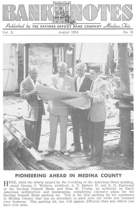 From the 1930s forward, however, the hotel was no longer a central part of Medina. Like many small towns in America, the automobile changed the way people moved and lived. In 1954, the Savings Deposit Bank bought the American Hotel and proceeded to knock down the historic building to make a parking lot. The bank's monthly newsletter from August 1954 described it as a parking lot that "will appear different than any other you have ever seen." The property remained a parking lot for the remainder of the century.