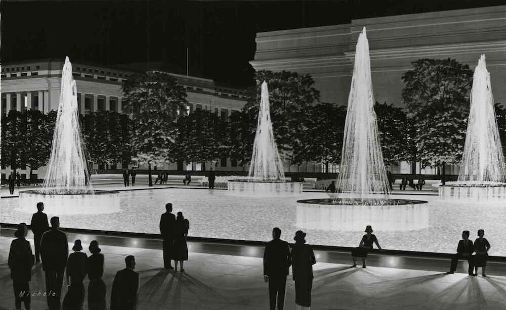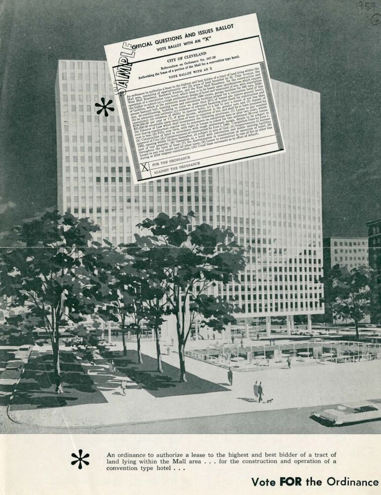 A number of plans over the years promised to inject new life into the Mall, including unrealized plans for embellishments in the late 1920s and again in the late 1930s, the short-lived amenities brought by the 1936-37 Great Lakes Exposition, a failed bid in the late 1950s for a "hotel on the Mall," and the addition of the Hanna Fountains in 1964 (but removed in 1987). In the 2010s the Mall received a new carpet of grass atop the ramp-like rise on Mall B necessitated by the most recent expansion of the convention center. New buildings, including a "medical mart" and a convention hotel were added on the Mall's western flank in anticipation of the city's hosting of the 2016 Republican National Convention. Yet the Mall still struggles to serve as a civic space, calling attention to the challenges that face all efforts to create such places.
