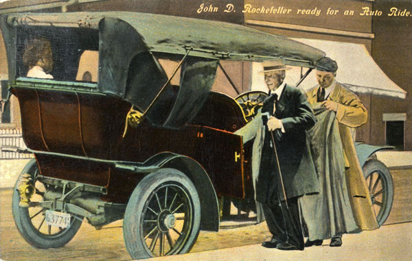 John D. Rockefeller ready for an auto ride In 1911, automobile popularity caused the sale of gasoline to exceed kerosene. At that time the Standard Oil enterprise was in control of 85% of Ohio's gasoline. Source: Cleveland State University. Michael Schwartz Library. Special Collections. Date: 1911