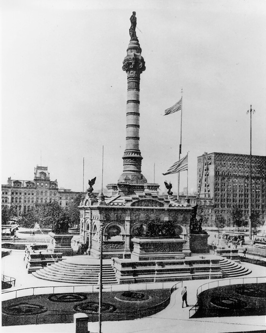 Amid the busy streets of downtown Cleveland stands the Soldiers' and Sailors' Monument, built to honor the 10,000 Cuyahoga County residents who fought in the Civil War. Almost fifteen years after Major William J. Gleason first suggested the idea of honoring the bravery of these local Union soldiers, the monument was finally dedicated on July 4, 1894. This long anticipated event featured a parade over five miles long, an opening address made by William McKinley, performances by the Great Western Band, and children singing anthems of patriotism.