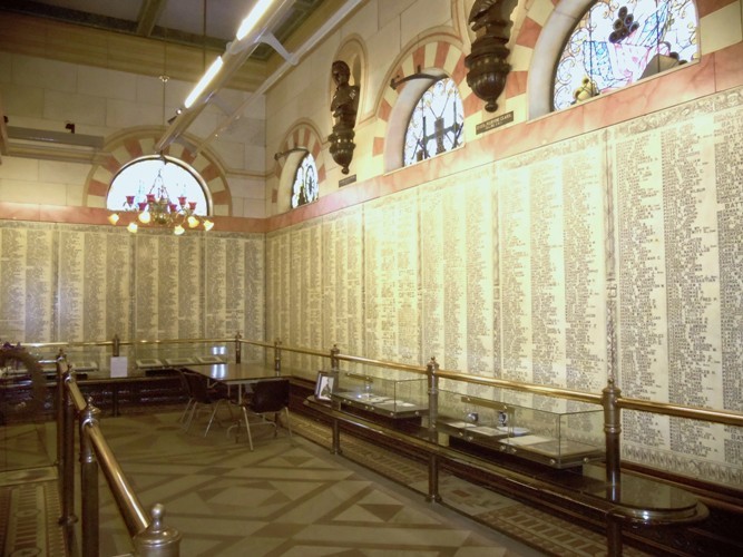 The Tablet Room The 10,000 Union Soldiers from Cuyahoga county are engraved on the marble walls of the tablet room. Above the tablets are some of the busts of soldiers killed in action. Creator: Heidi Kathleen Elise Fearing