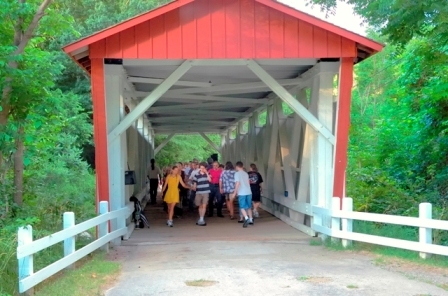 Passing by the Everett Road Covered Bridge, you can still hear the shuffle of feet moving to a lively tune. Both young and old come together at the bridge to share in a tradition passed down from the Cuyahoga Valley's first settlers from New England: the contra dance. Several times a year, friends and neighbors gather together to dance at historic locations near the Village of Peninsula. One of the most popular settings, the Everett Road Covered Bridge, allows dancers to connect to a tradition deeply rooted in the valley experience. Incredibly popular during the early 20th century, dances offered young men and women the rare opportunity to enjoy entertainment together. A local orchestra played while a caller announced instructions for the dances, which took place in nearby dance halls, or even in the street. The modern use of the Everett Bridge evokes these historic traditions of engagement with the local community.
