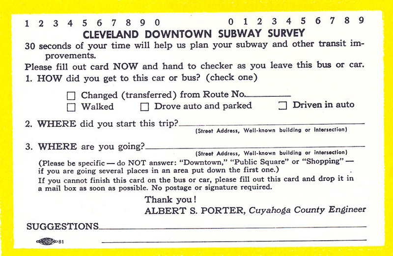 Imagine descending an escalator from USBank Plaza and boarding a subway bound for Tower City Center. Mayor Tom Johnson first proposed a Cleveland subway in 1905, and the idea surfaced repeatedly thereafter. After several failed attempts between the world wars, the city came closest to realizing this dream in 1953, when Cuyahoga County voters approved a $35 million bond issue for a downtown circulator subway by a two-to-one margin. The most discussed route would have traversed a loop from the Cleveland Union Terminal to Superior Avenue and East 9th Street, then to Euclid Avenue and East 13th Street, and back along Huron Road to its origin. Although popular with the public, freeway advocate and county engineer Albert S. Porter persuaded county commissioners to nix the plan in 1957.