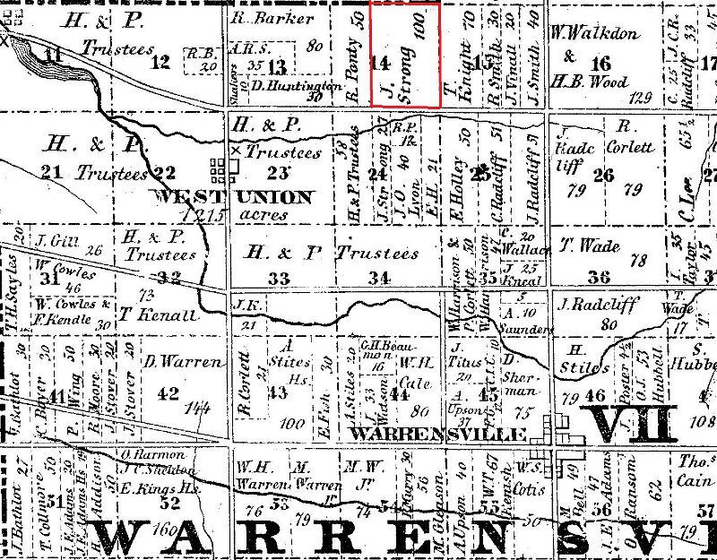 Strong farmed 100 of the 160 acres he purchased, selling the other 60 acres to a neighbor in 1838. On this land, Strong and his wife Clarissa raised their eight children--Lucina, Hannah, John, Ely, Spencer, Albert, Jacob and Myron. In 1853, perhaps hearing of more fertile lands in the west, Strong sold his farm to John Hecker and moved with his family to Indiana.