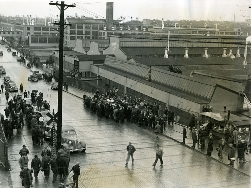 At 2 p.m. on 28 December 1936, approximately 200 workers at the Fisher Body plant abruptly stopped work and staged a sit-down. Once the news spread of the strike, 125 picketers marched on the street in support of the strike. The workers gave their demands: They wanted their hours cut to three seven-hour shifts so layoffs could be avoided. On holidays and Sundays the workers expected to be paid double. Finally, they wanted the union members who discussed the settlement of their terms be paid for the time they spent negotiating. However, negotiation proved to be long and difficult The men remained inside Collinwood's Fisher Body for more than a month.
