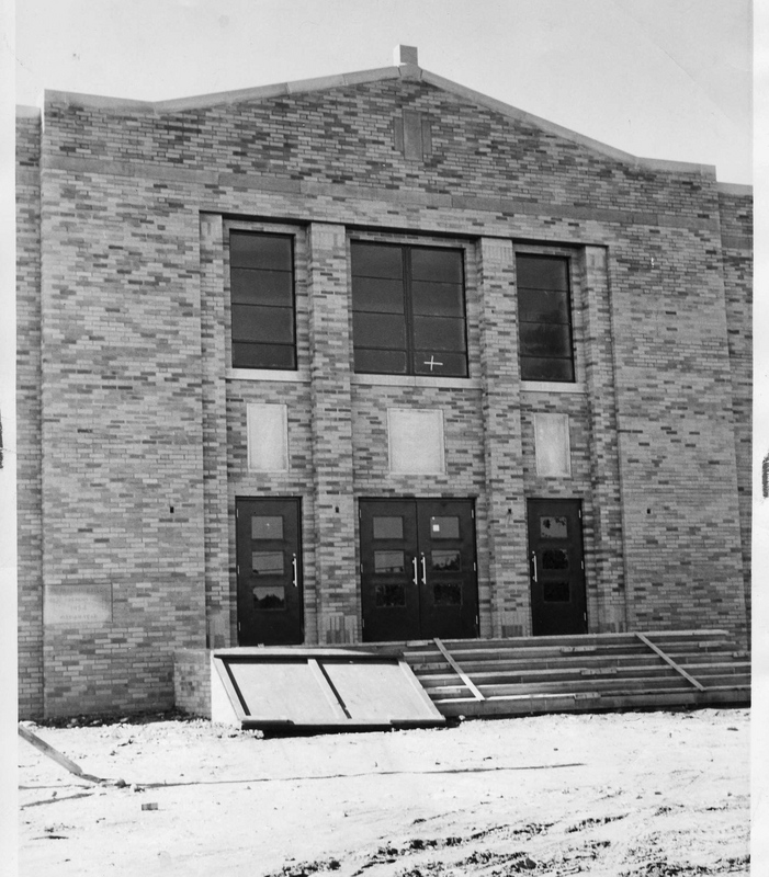 In 1953, the Congregation sent Father John O'Brien and Brother Edward Mullen, from St. Jean de Baptiste parish in New York City to establish the parish and take up residence in an old farmhouse on the church's present property. The newcomers initially arranged to have weekend Liturgies at the old Richmond Theatre on Mayfield Road, serving about 100 families in the area. As the parish community began to gather and grow, temporary worship space was built in 1954. The school opened in 1955.