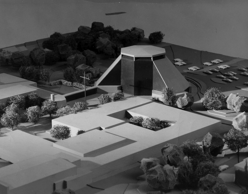 In 1969, Fr. O'Brien worked with architect Richard Fleischman on a plan for a new church. Conceived as a hilltop beacon overlooking Lake Erie, the design included a sixty-foot high north wall made of glass. It forms a major segment of the octagonally extended building and provides a vast open space that encourages people to share and value community worship. The design represented a departure from traditional church designs at the time.